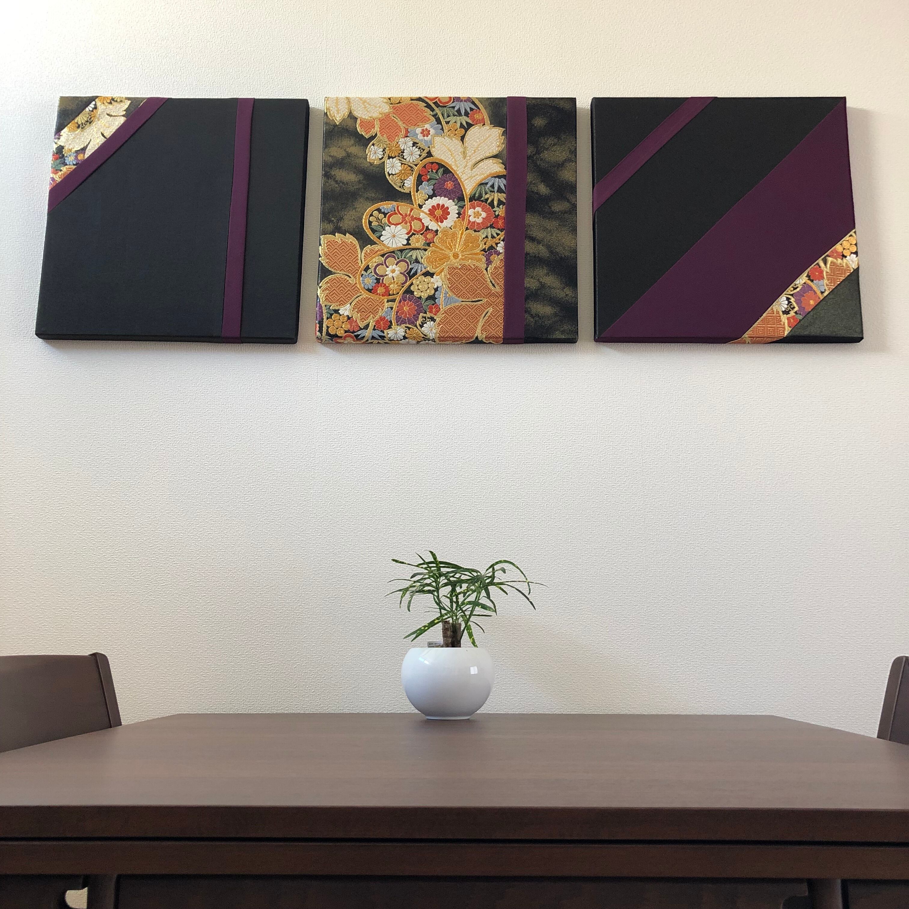 花嫁衣裳の豪華な色打掛の生地を使って、ファブリックパネルをつくりました。