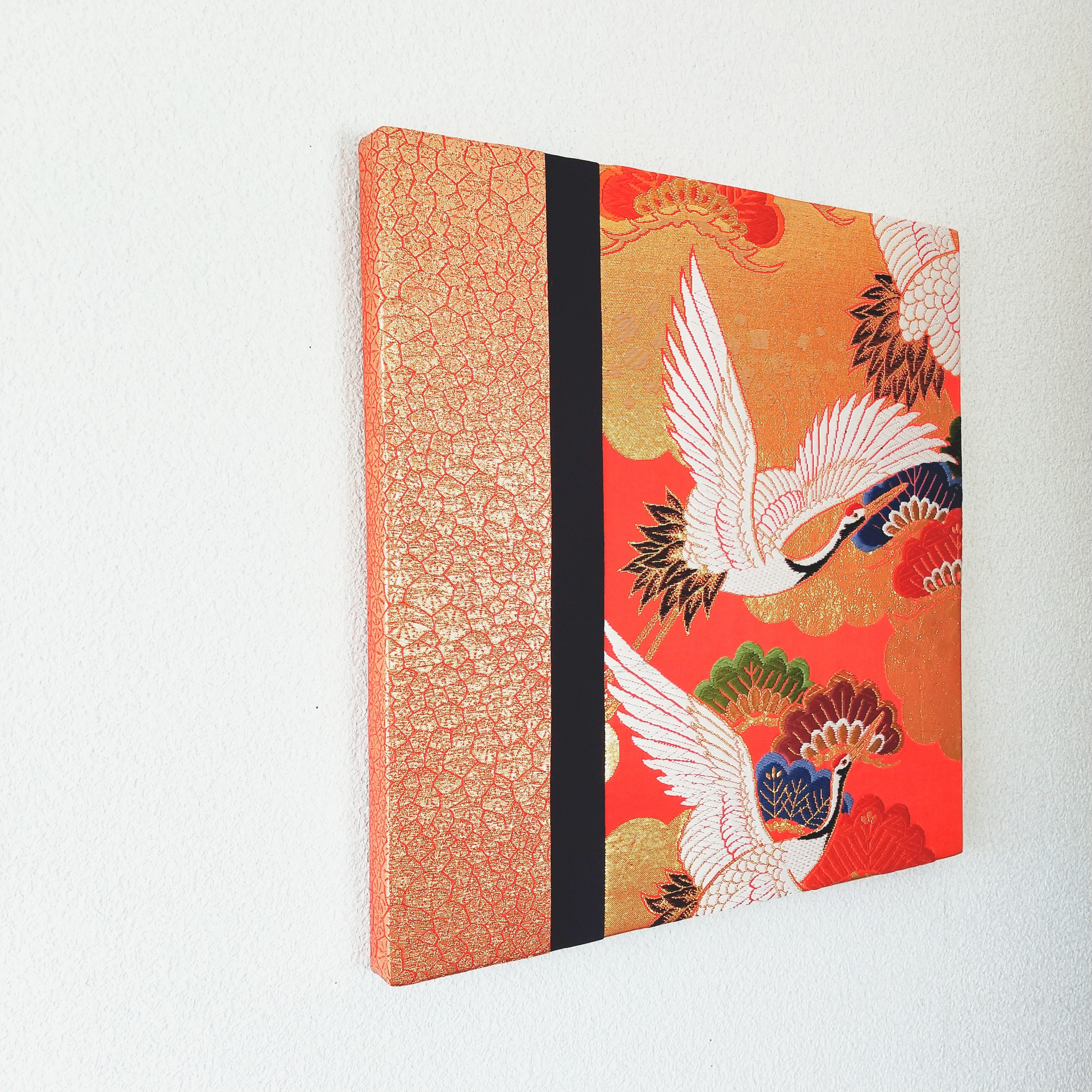 花嫁衣裳の豪華な色打掛の生地を使って、ファブリックパネルをつくりました。