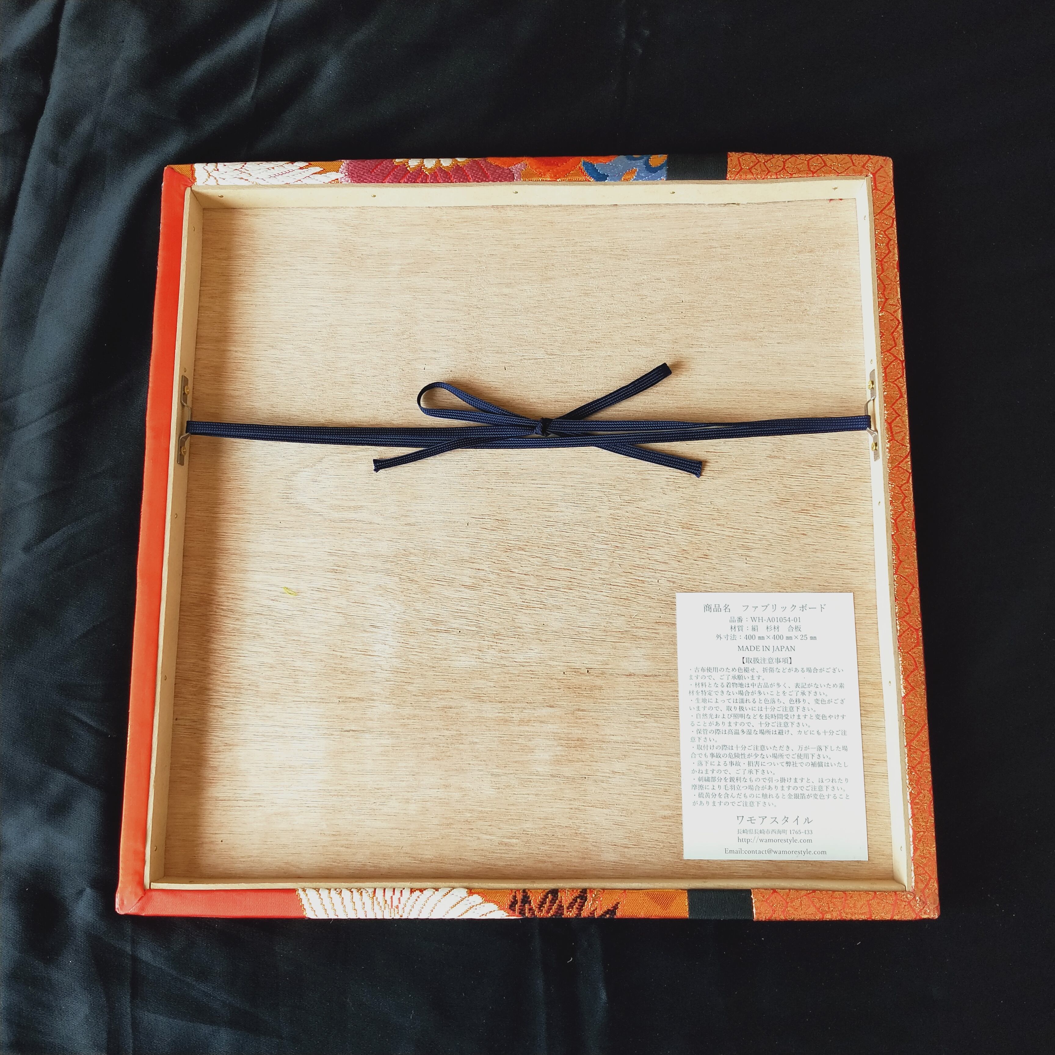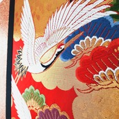 額などは使用せず、ファブリックで直接出来上がっているので、色鮮やかで角度によって見る色が異なる絹の色味とその細やかな刺繍が全面に活かされた商品です。